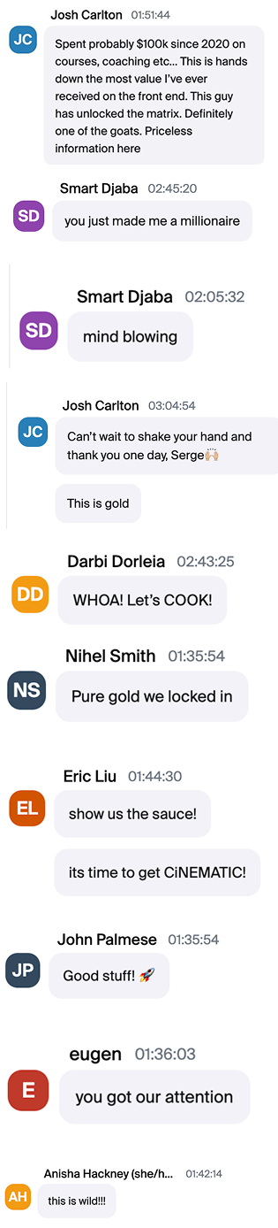 Before he became a partner, he was selling a coaching program for $4-5k to wood entrepreneurs who wanted to scale their business and was stuck around 20k/m. We changed his positioning from coaching to building & releasing a protocol & systems into their businesses, implemented our acquisition infrastructure and 60 days later, Generated his first $50k+ Month.